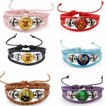 Harri Potter Magic Gifts Death Hallows Action Figure Retro Leather Cord Bracelet Golden Wings Owl Necklace